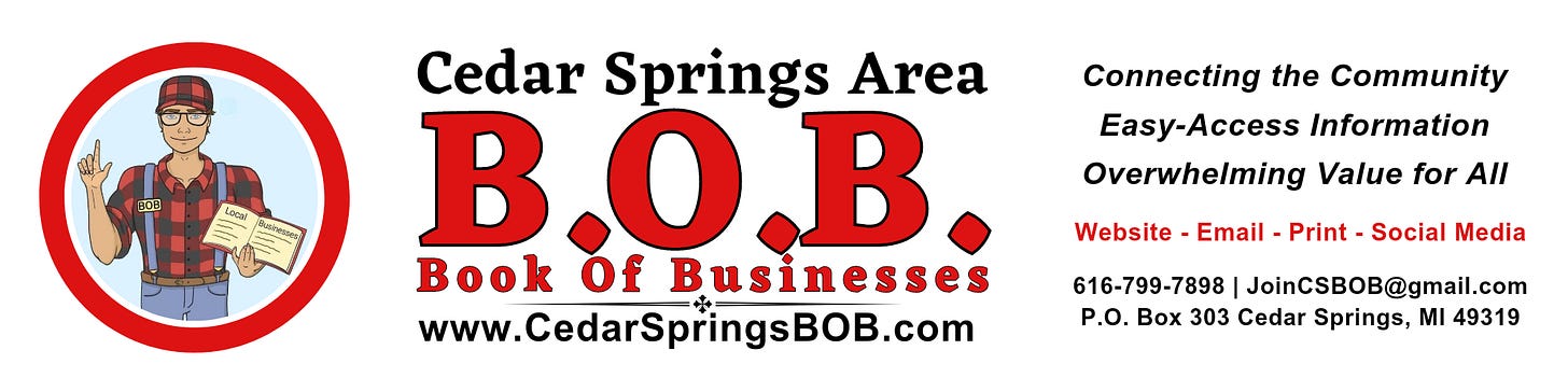 BOB Coming soon...Connecting the CommunityCedar Springs BOBMay 23, 2023ShareThis is Cedar Springs BOB.SubscribeNext